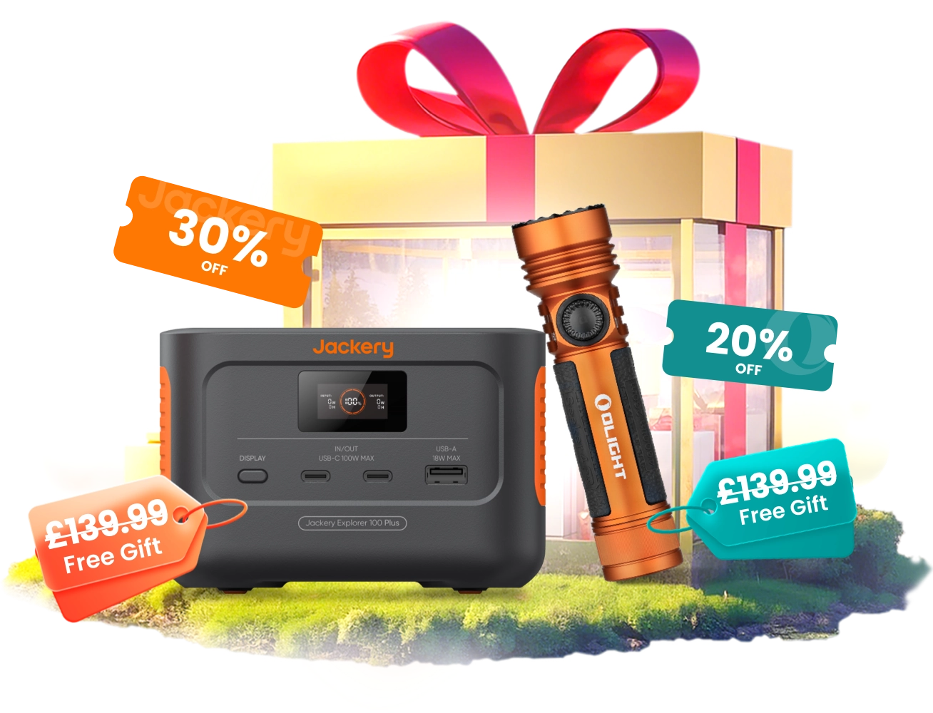 ● 3 lucky winners will receive a co-branded prize bundle prepared by Jackery and Olight: Jackery Explorer 100 Plus + Olight Seeker 4, value at £280.