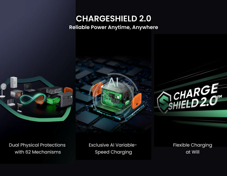Experience next-level safety with Jackery 1000 v2. Featuring upgraded ChargeShield 2.0 technology, it offers diverse charging modes including fast charging, emergency super charging, and whisper-quiet charging. Ensures you're always powered up and ready to go. With Dual Physical Protections with 62 Mechanisms Inside and Out, Delivering Comprehensive Safety for Peace of Mind during Energy Usage.